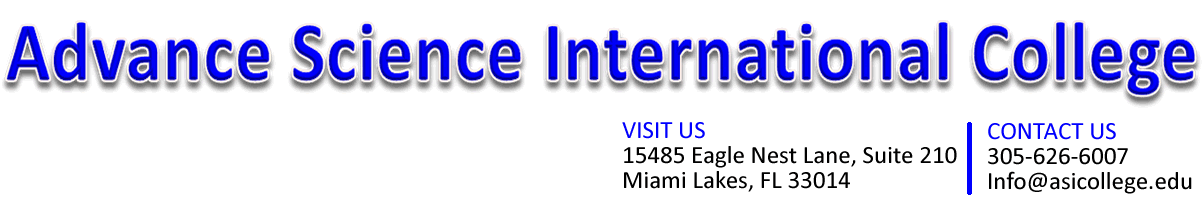 15485 Eagle Nest Lane, Suite 210, Miami Lakes, Florida 33014. Admissions Representative: mleiva@asicollege.edu Phone: (305) 626-6007